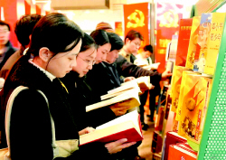 北京宣武区北纬路中学的一位政治课教师,今天带着孩子一进入图书大厦,就一头扎进了重点出版物展销专柜。当稚气未脱的孩子催着她快点走时,她仍在全神贯注地挑选党建理论方面的书籍。她对记者说:“我正在写一篇党建理论方面的论文,同时正准备给学生上党建理论方面的专题课。”