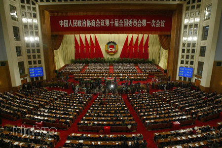 中国人民政治协商会议第十届全国委员会第一次会议,3月3日下午3时在人民大会堂开幕。来自各族各界的委员出席会议,履行人民政协政治协商、民主监督、参政议政的职能。